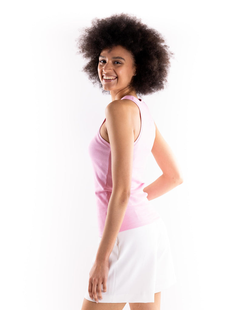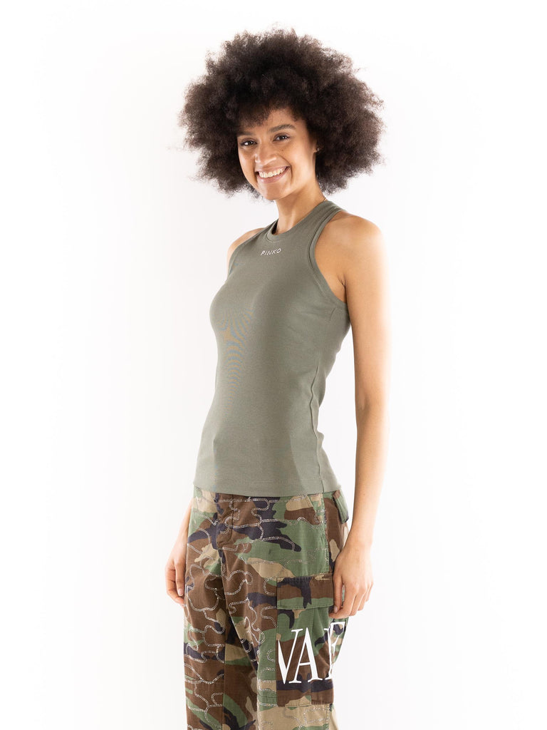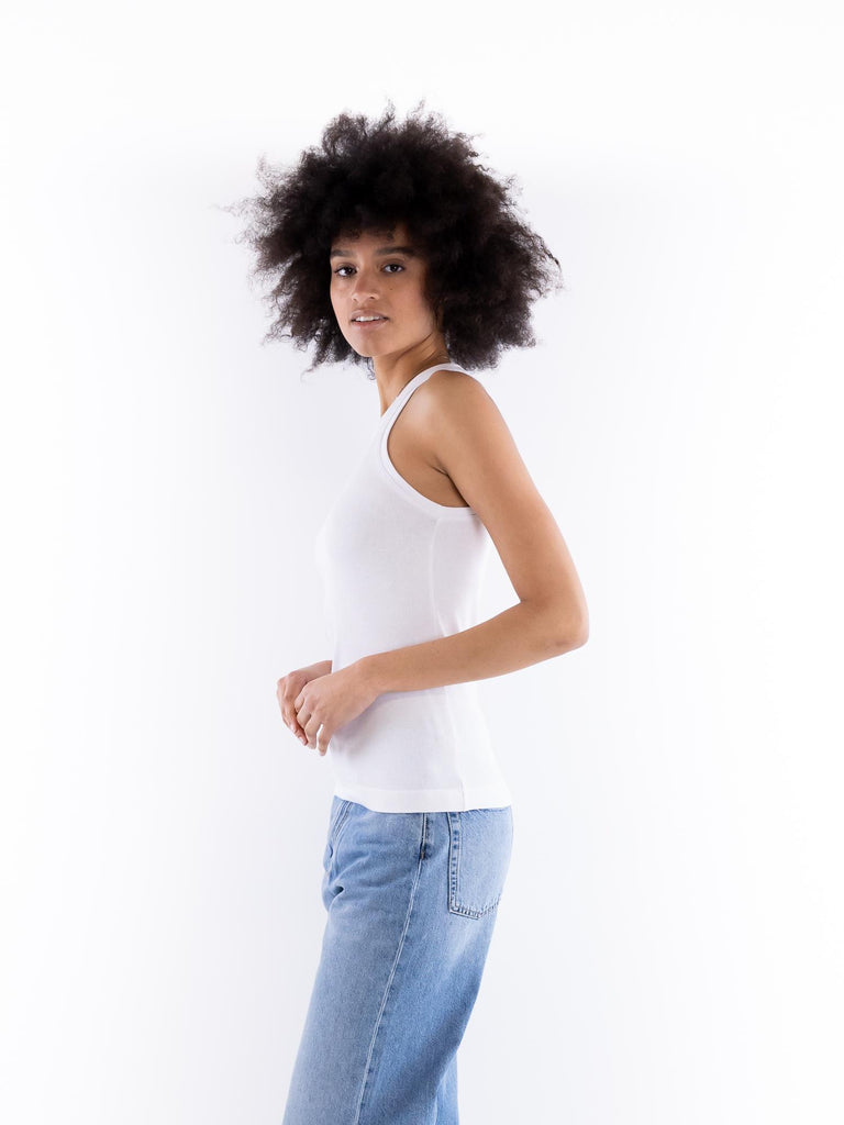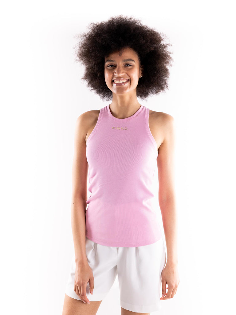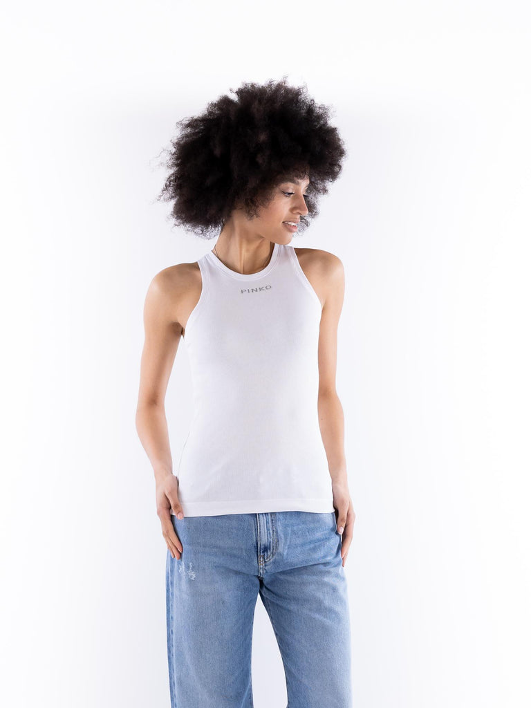 Top smanicato Agner a costine bianco 104808 A1KWZ05 PINKO
